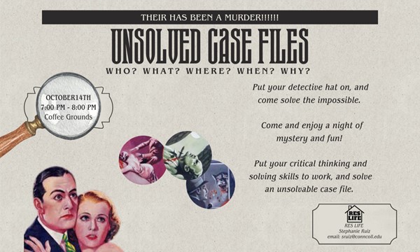 - Unsolved Case FilesUnsolved Case Files Put your detective hat on, and come solve the impossible. Have you ever wanted to solve mysteries like they do on TV? Come and enjoy a night of mystery and fun! Put your critical thinking and solving skills to work, and solve an unsolvable case file. From to at Coffee Grounds.