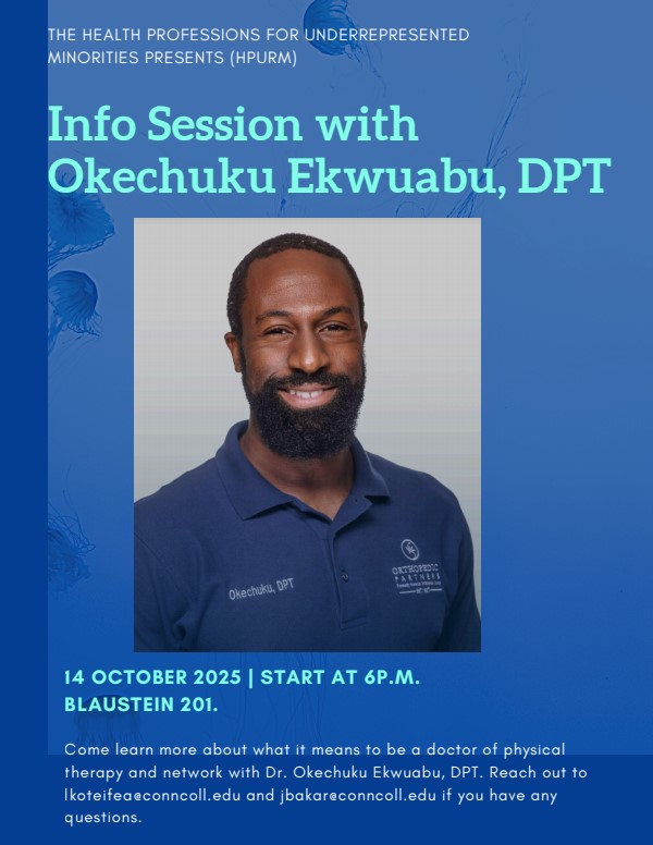 - Info Session with Okechuku Ekwuabu, DPTInfo Session with Okechuku Ekwuabu, DPT In this session we hope to learn more about what it means to be a doctor of physical therapy and network with Dr. Okechuku Ekwuabu, DPT. From to at Blaustein 201.