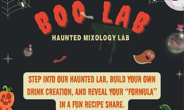- BOO LABBOO LAB Step into our haunted lab and mix up your own spooky concoctions with colorful juices, fizzy sodas, and creepy add-ins like gummy worms or eyeballs. Once everyone’s created their drink, we’ll go around and share our “recipes” out loud, the perfect way to laugh, compare mixes, and kick off Halloween together. From to at Freeman Classroom.